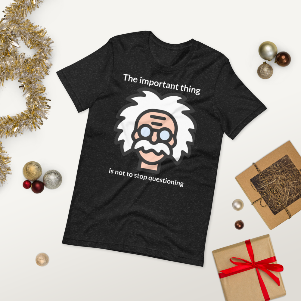 Feel like a genius when you wear this Einstein shirt that quotes him: "the important thing is not to stop questioning"
